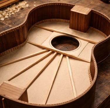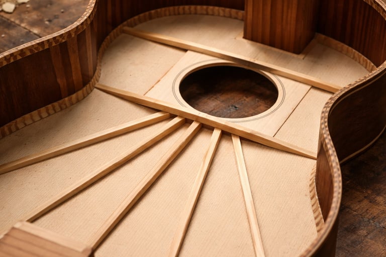 En esta línea cuidamos la precisión estructural y la estabilidad. La construcción se realiza con técnicas tradicionales de ensamblaje, asegurando correcta alineación del mástil, estabilidad en el puente y una acción cómoda para facilitar el aprendizaje.